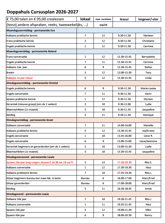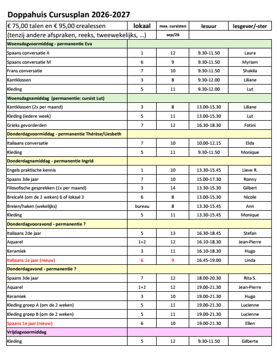 Hier alvast een voorproefje van de cursussen voor september 2026.